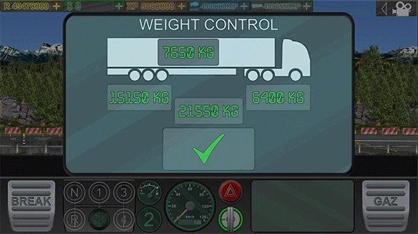4、点击游戏里的左右按钮来控制卡车移动,你自己的卡车还能换挡。此外,你能够自由解锁不同卡车,并在各种游戏地图中驾驶。
