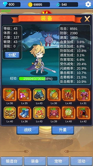 5、装备方面,无脑选择击晕、闪避、暴击、反击这类属性就行,其中击晕优先级高于其他所有属性。接着就不断尝试攻打首领,过程中可能会不断死亡,但只要运气足够好,最终肯定能通关。