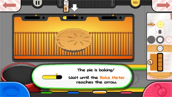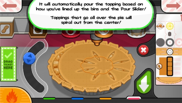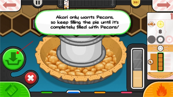 7. 通过左右拖动上方的格子来挑选水果,把所需水果对准木盆的正中间。