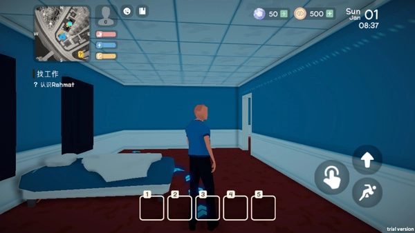 《失业生活》是一款饶有趣味的生活模拟经营类游戏。在游戏里,玩家会扮演一名刚遭遇失业的年轻人,要打理角色诸如吃饭、睡觉、洗澡等基本生活需求,同时努力尝试寻找工作,还要完成各类兼职。在《失业生活》游戏中,玩家能够挑选不同的工作岗位,从事多样的职业,而且还能与其他非玩家角色(NPC)展开互动交流。由于做出的选择各异,最终导向的结局也不尽相同,玩家将一步步迈向成功。