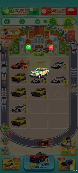 4、玩家们合成出5级豪车后,即可在充满钱途的界面右下角开启自动模式。