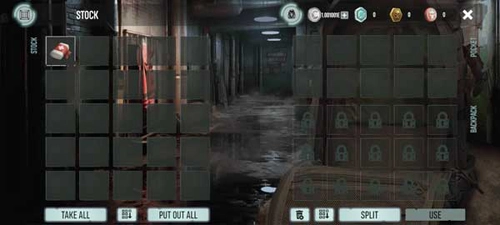 2、当角色停留在箱子旁边时,点击右下角的拾取按钮,即可获取物品;若点击【TAKE ALL】,就能把所有物品一键收入背包。