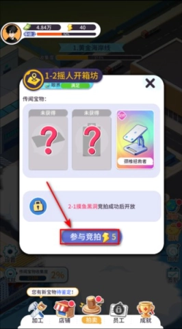 5、若竞拍成功,点击集装箱里的物品。