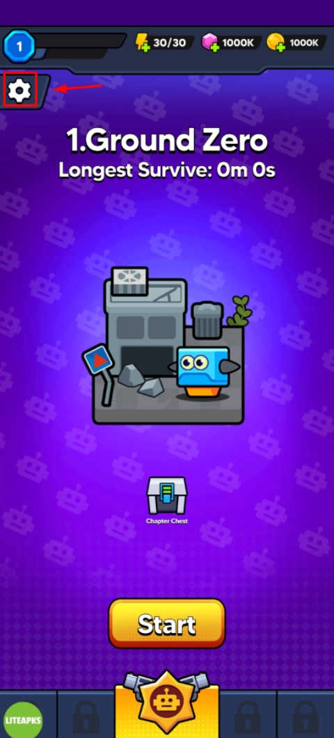 1. 开启《僵尸战争:战斗幸存者》游戏,轻点左上角的齿轮图标。