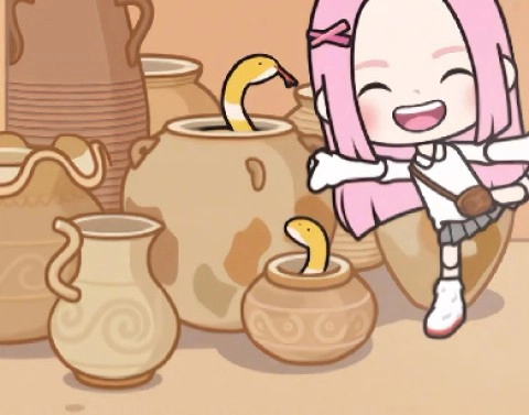 3、在沙漠市场场景中,点击场景里的罐子,就会有一条小蛇出现。