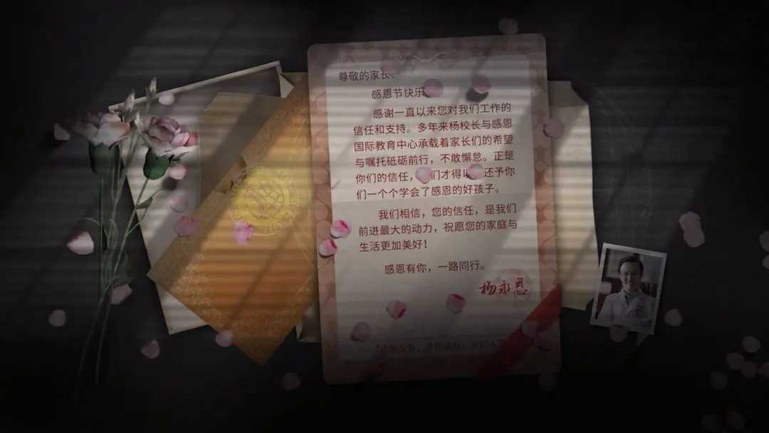 达成条件:于学校里始终选择屈服(在食堂面对侯逸挑衅时选“认怂”、在操场受罚期间一直选“认怂”、操场受罚结束后拒绝陈松),满足上述条件后,在家书写信环节选择“感恩杨校长”,然后一直点击“继续”,直至书写完成??(这也太坑了吧……)