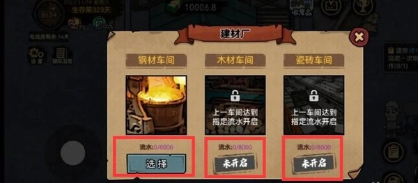 1. 当玩家的钢材车间流水账达到8000时,即可成功解锁木材厂,也就是木材车间。