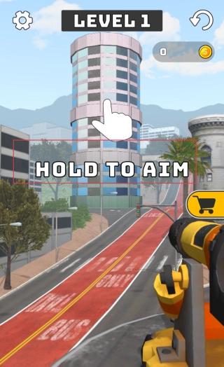 1、于游戏界面瞧见提示“HOLD TO AIM”,此时按住屏幕,便能开启对加农炮的操控,进而进行瞄准操作,将目标锁定为需要拆除的建筑。