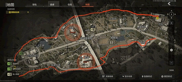 此打法主要在地图边缘穿梭搜刮,碰到真人的几率相对较低。在此过程中,要尽可能躲开热点高风险区域,选择避战。它和打法一类似,着重机动性,不突出战斗力,装备推荐也跟打法一一致,费用控制在两万元上下为宜。下面提供一些游走路线以及搜集物资的地点,可供大家参考: