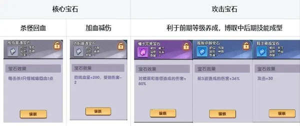 优先选择回血和加血类宝石,无论其颜色和品质如何,这类宝石始终是最为重要的。随着游戏进程,逐步替换成更高品质的宝石。其他类型的宝石可以选择增加攻击力的宝石,帮助角色在前期发育,为后期技能的强力输出做好准备。