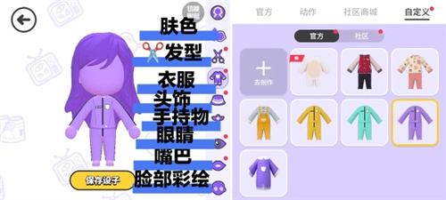 5、【编辑形象】 - 购买衣服,包括动作和玩家自制的衣服,还有自定义更换衣服的操作。