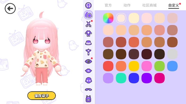 在主界面轻点〖编辑形象〗,随即进入〖自定义〗页面,在中间的物品条中,第二个便是肤色选项,其图标呈现为小脑袋搭配水滴样式。