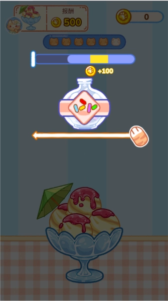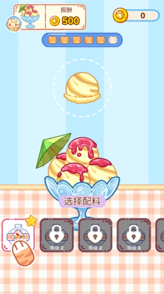 4、能够制作出各式各样口味的冰淇淋,任何食材都可以添加进去,只要完成所有挑战目标,便自然可以领取相应的资源。