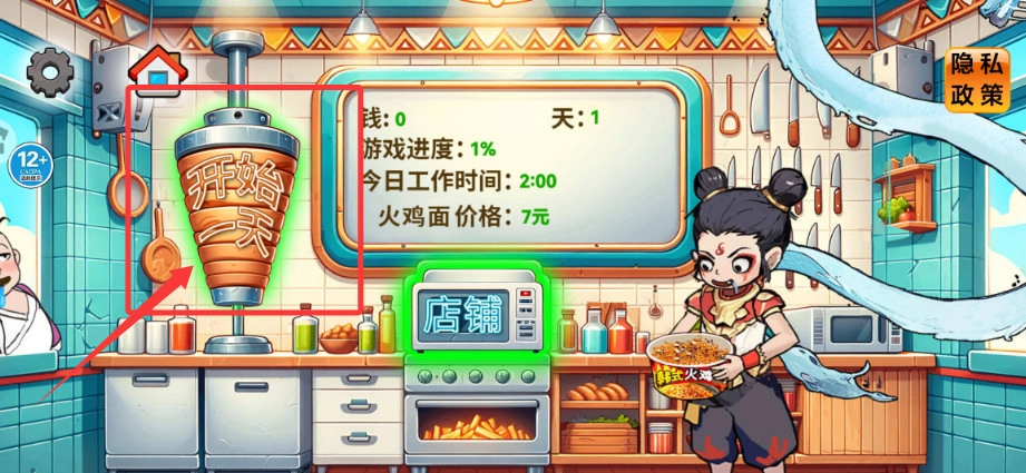 1、打开游戏,点击“开始一天”按钮,进入经营环节,依据顾客需求制作食材。