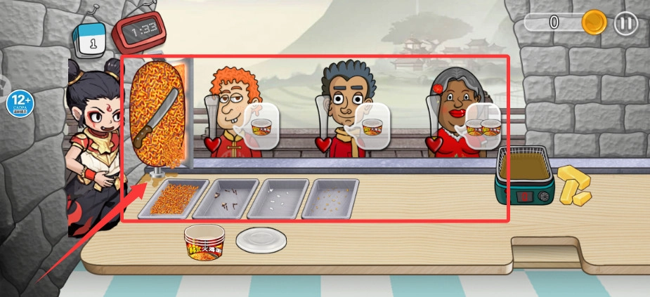 2、面对排队顾客,观察其订单要求,从食材区选取对应配料快速完成制作交付。