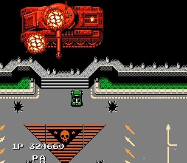 2、最后一关的 BOSS 是一辆重型坦克,想必不少人得耗费好多条命才能通关吧!实际上,要过这关很容易,在重型坦克靠右下方稍微偏一点的位置,有一处攻击盲区,朝那儿打,简直小菜一碟。