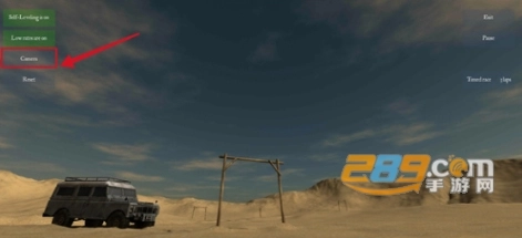 进入后,能看到左侧依次为自调平开启、高帧率开启、第三人称视角以及最后的重置;右侧是退出按钮与暂停按钮。