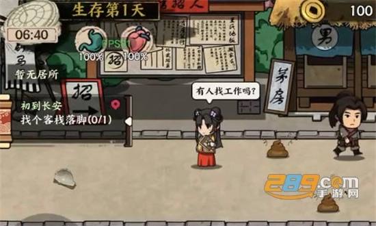 1、一开始进入游戏,还是大家较为熟悉的新手教程。这里要提醒大家,千万别怕麻烦就选择跳过,完成新手任务能获取少量金钱。这笔钱虽说不多,但足够支撑我们前期在唐朝生活一周。前期的赚钱工作和《打工模拟器》类似,种类有限,而且大多是比较耗费时间的体力活。像刷马桶这种工作,我不太建议大家去做,因为它会在很大程度上降低我们的健康值。要是健康值过少,还得花钱看病,实在是得不偿失。
