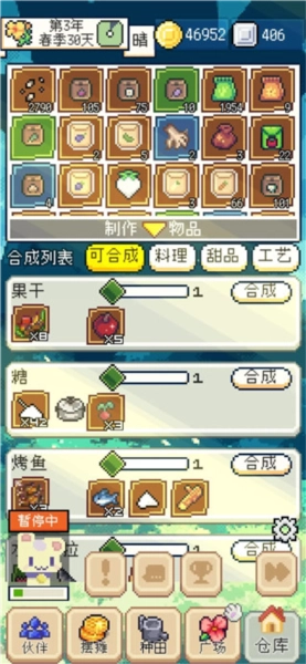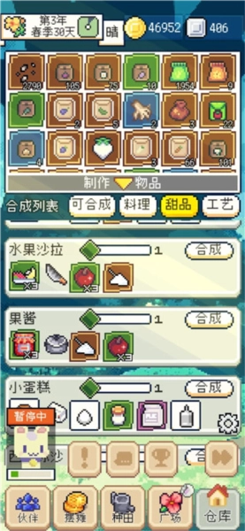 1等待你去发掘的食谱与配方多达120种,你可以把作物、动物的产出品,以及探索过程中获取的材料,加工制作成各类商品,然后进行售卖。