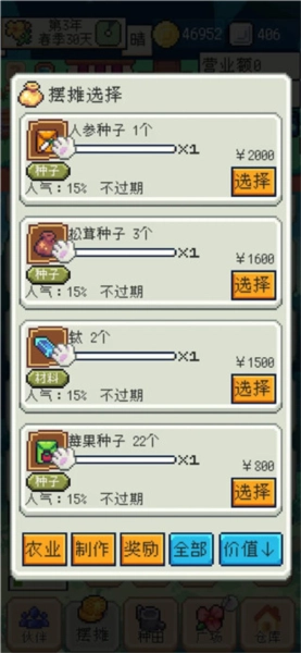 前中期资源衔接不上该如何解决?通过在摊位售卖矿物来获取收益。