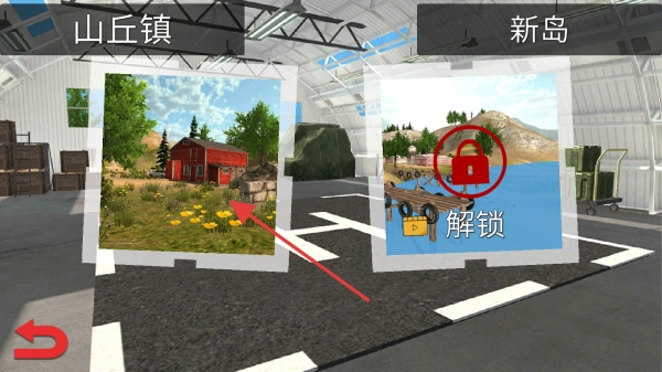 2、于地图选择界面,挑选红色箭头指向的山丘镇地图,随后进入此地图开展直升机驾驶挑战。