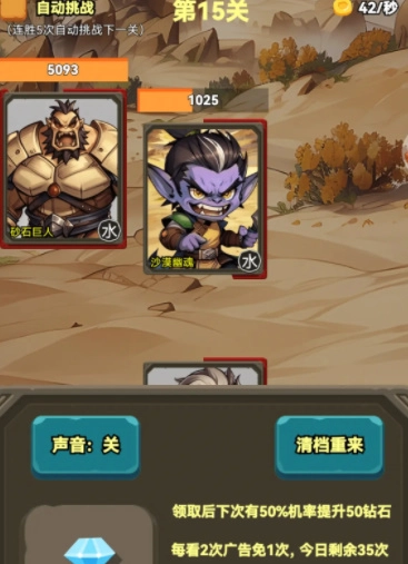 1. 游戏采用简单轻松的放置卡牌风格,搭配复古的画面风格,玩家将扮演无畏勇者,展开未知的冒险。
