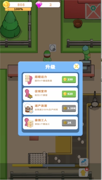 招募并升级工人,以提高生产力。