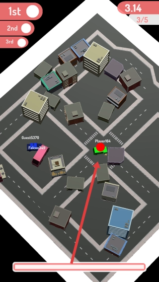 3、在游戏过程中,通过点击屏幕的左右两边,来操控红色车辆进行移动,以躲避炸弹的袭击,争取成为最后存活下来的玩家,从而达成关卡目标。