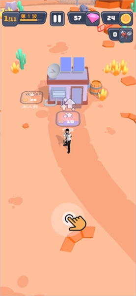 1、操作方式简便,点击即可操控角色移动,还能自动射击,打败来袭的敌人。