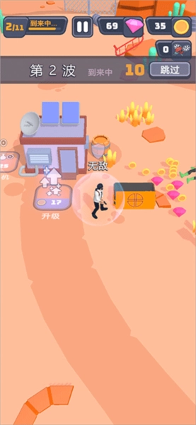 1. 进入游戏之后,依靠在屏幕上进行滑动操作来掌控玩家的移动,当敌人靠近时便会自动发射子弹。