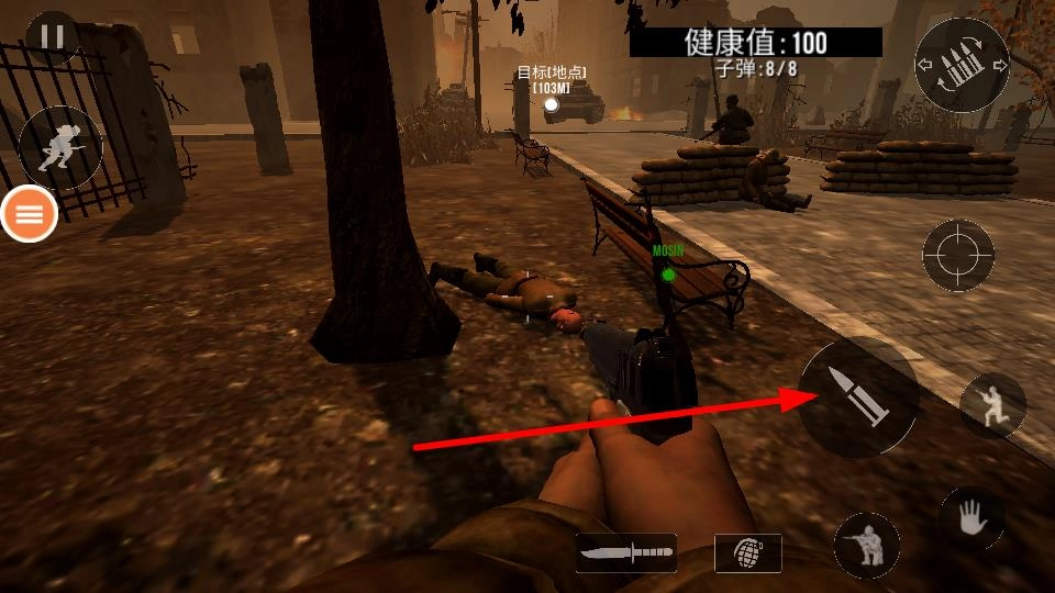 2、对准箭头所指前方的敌人开枪射击,以此消灭敌人,扫除前进路上的障碍,确保自身安全。
