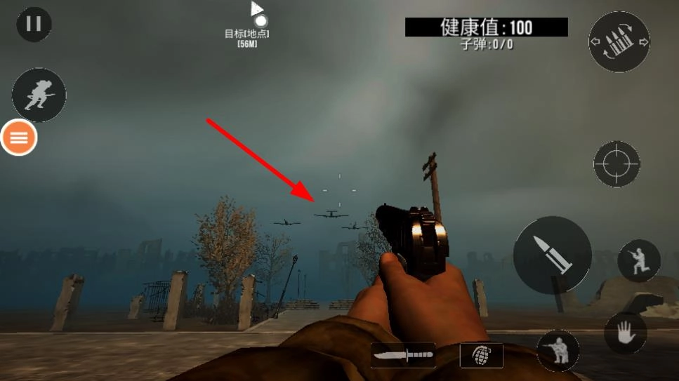 4、锁定箭头所指的飞机并开枪射击,以此攻击空中目标,达成特定任务要求,进而获取游戏奖励。