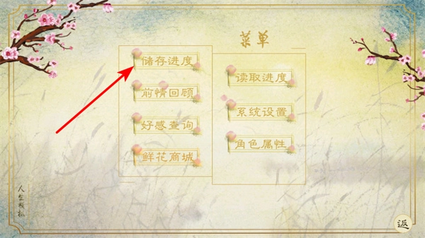 3、点击“储存进度”选项,即可保存当前游戏进度,防止因意外状况致使游戏数据丢失,这是保障游戏体验的关键操作。