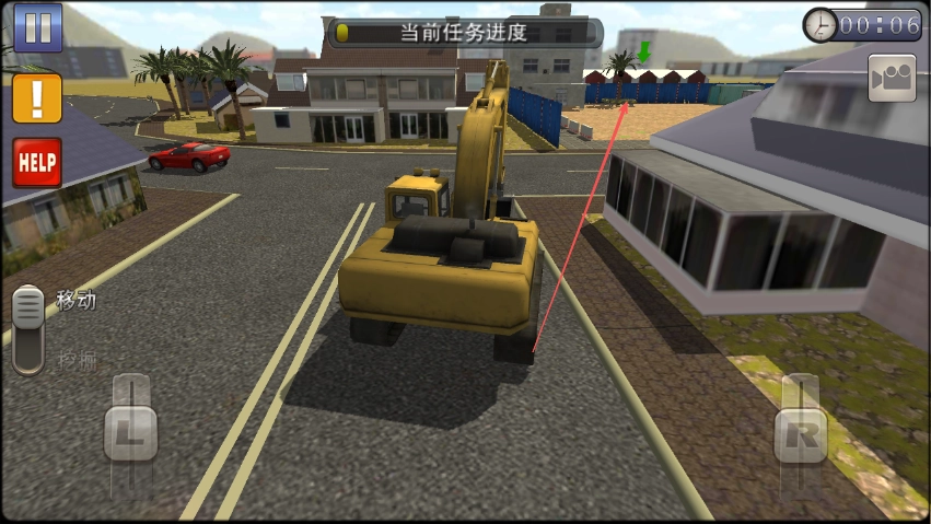 2. 查看任务进度条后,挖机依据红色箭头的指示,朝着绿色指示点进发。