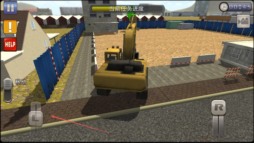 3、要是需要调整挖掘机的方向,点击屏幕右侧的R按钮来执行转向操作。