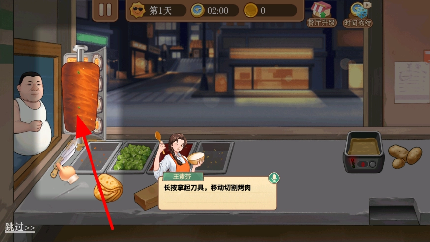 1. 游戏开始,玩家依据提示点击烤肉大叔,打开投料盒,备好制作烤肉所需的食材,由此迈出美食制作的第一步。