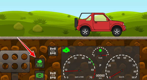8、轻点最左侧的引擎图标,随即能听到汽车启动的声响,稍作等待,当图标亮起,便意味着点火成功。