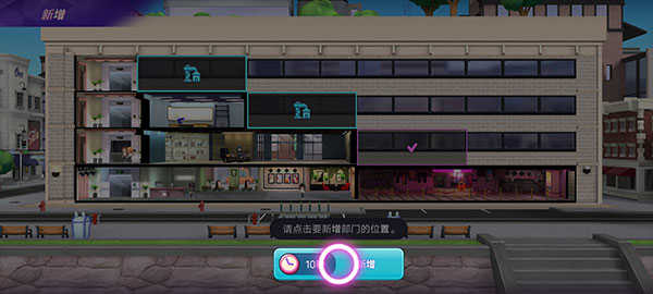 7、挑选空余空间,点击想要新增部门的位置,就能开始建造,后续还能够做出改动。