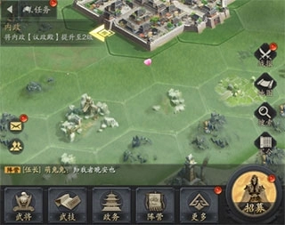 政务方面,可执行以下操作:迁城,即把主城整体迁移至目标区域;闭城,处于闭城状态时不会遭受攻击;再起,也就是重新挑选地域,但需舍弃现有的领地。