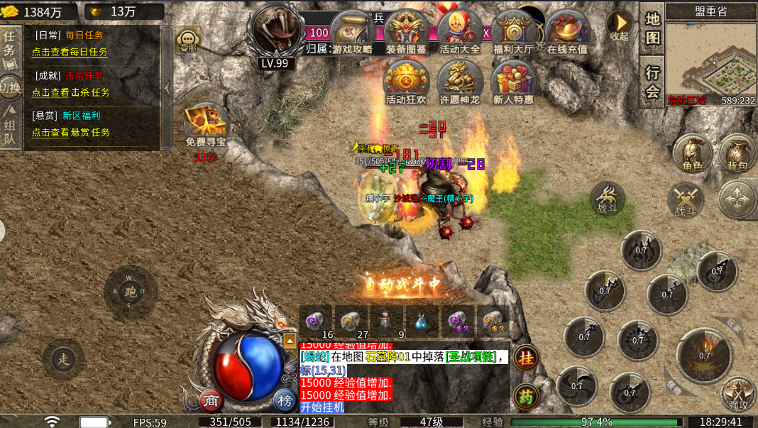 1、无需手动,全程挂机。自动挂机释放技能打怪,助力快速完成任务。