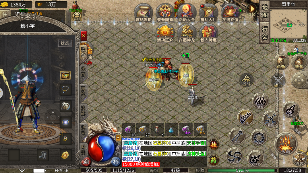 2、开启自动点击寻路功能,游戏过程变得更加轻松简便,完全实现自动化。玩家只需看着角色打怪,期待掉落极品装备即可。