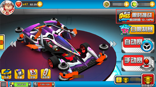 6、等你有了基础装备,就开始练习手动图,想办法刷出厨师和机器人这两个boss!务必刷出来,它们作用很大!厨师能够恢复电量与耐久,机器人升到满级后可以获得虫洞车位,有助于提高成绩。 (每个boss角色都对应一款车,后期可以去跑跑车的碎片,再进行合成,像超极速ss、花仙号之类的。)