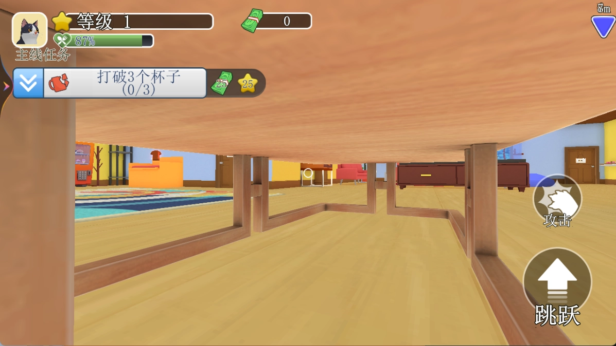 2、在操控橘猫移动过程中,尽量避免频繁与家具发生碰撞,因为碰撞会致使橘猫的移动速度减慢。你可以借助桌椅这类物体的边缘来调整橘猫的移动方向,如此便能更为灵活地靠近目标物品。