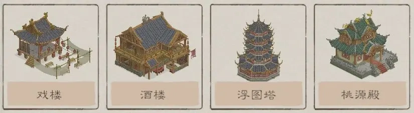 还有各类好看的装饰建筑,助力谷主打造桃源。