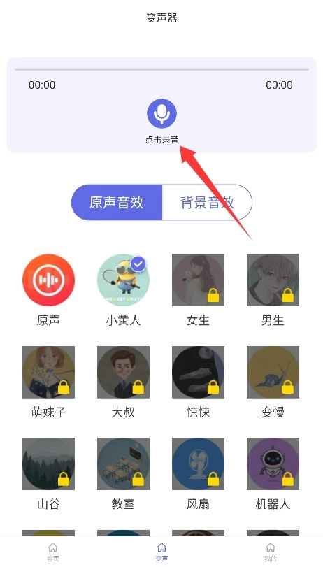 成功进入主页面后,从众多变声选项里找到自己钟爱的类型,接着点击录音功能键,就能启动语音录制流程了。