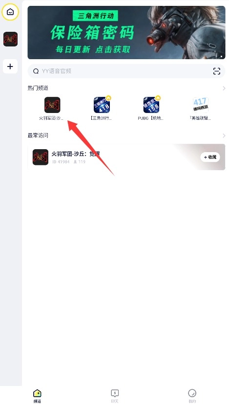 打开歪歪语音应用后,在首页的频道分类区域找到“热门频道”板块,查看其中正在活跃的语音房间。