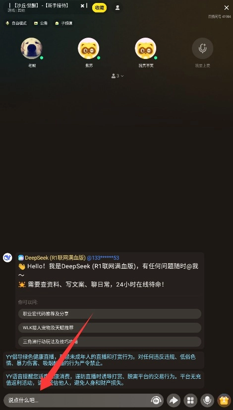 当你顺利进入频道后,就能在房间里看到此刻在线的成员,还能通过文字或者语音的方式参与聊天互动。