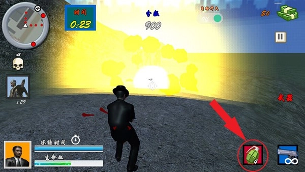 玩家点击右下角的手雷图标就能扔出手雷,能够直接炸死一群敌人。