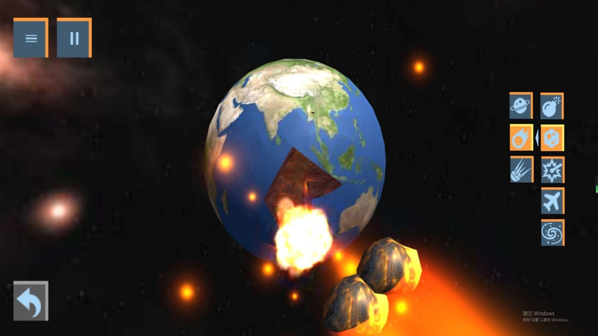 重置星球:若对当前的破坏效果不满意,或是想要重新开启新的实验,只需点击重置按钮,即可让星球恢复到初始状态。