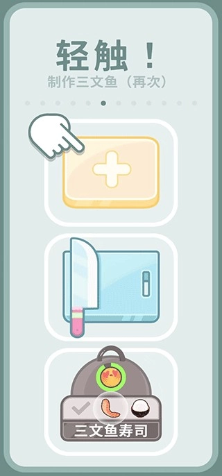玩家只需轻点屏幕,就能从食品箱里取出三文鱼着手烹饪。